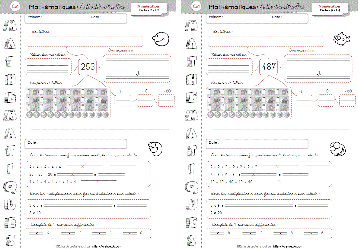 Voici donc 3 fiches pour la fin de la période ; je donnerai une moitié de fiche par jour, en alternant les deux types d’exercices. Merci à Crevette pour l’idée !