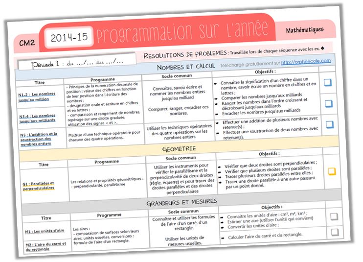 Dans la même veine que cet article, vous permettant de télécharger une année clé en main en français, je m’y suis mise pour les maths. Mais manquant de temps, je n’ai pas pu faire les 5 périodes d’un coup : le reste suivra au fur et à mesure (je ferai remonter l’article à chaque fois pour que vous soyez tenus au courant des mises à jour).