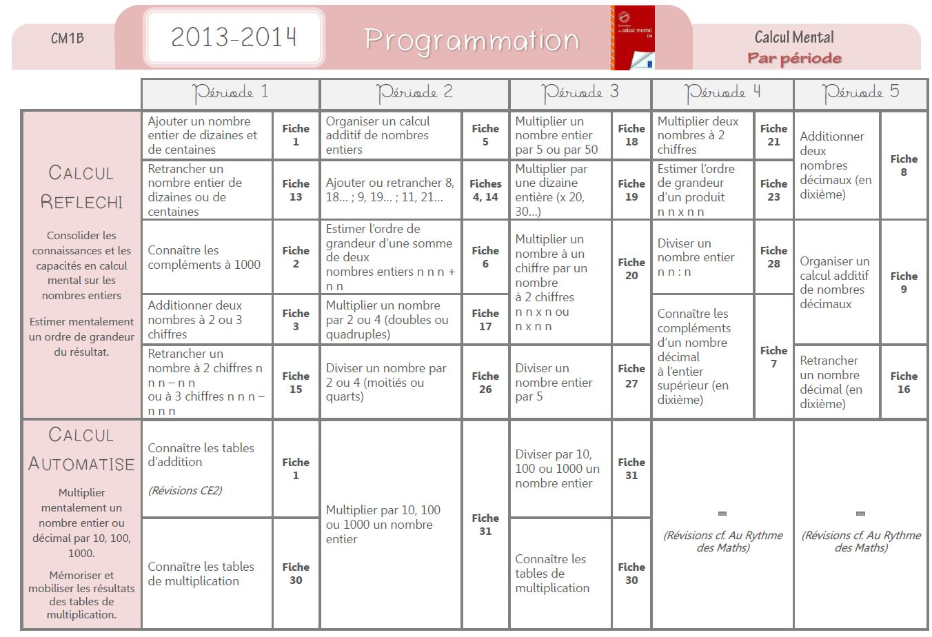 Jen nous envoie une programmation de calcul mental réalisée à partir du manuel s’entrainer au calcul mental CM.