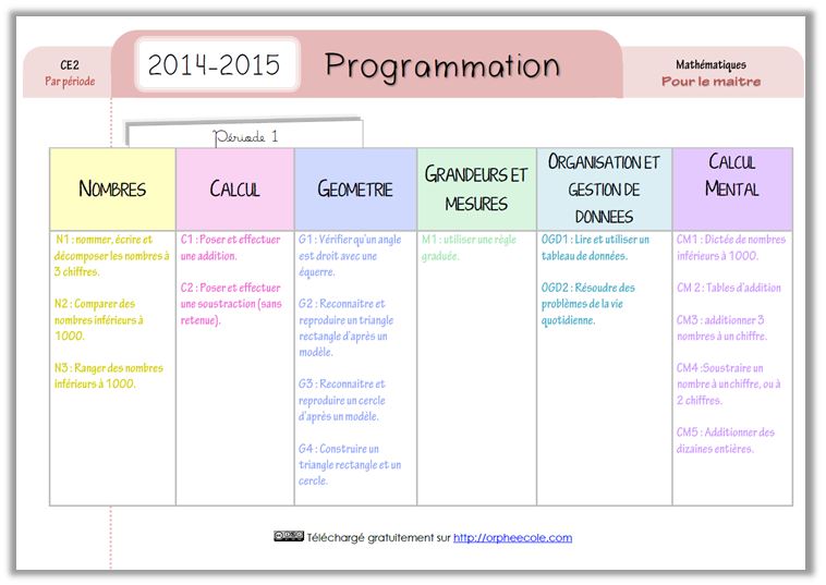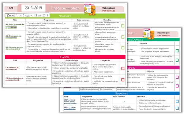 Grillon masqué   nous envoie sa programmation de mathématiques pour CM1, ainsi que sa progression sur la 1ère période.