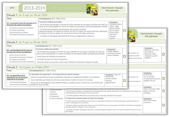 Jen nous envoie sa programmation de géographie, divisée par période, à partir des manuels Odysseo cycle 3 et de celui de chez Magnard.