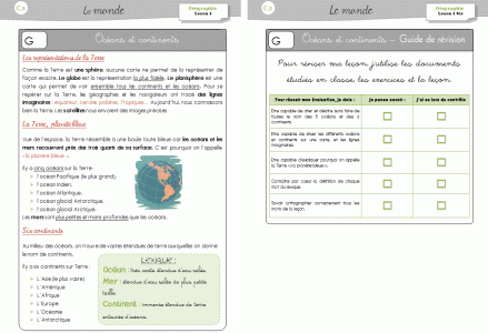 La leçon “le relief des continents et des océans” ainsi que le guide de révision.