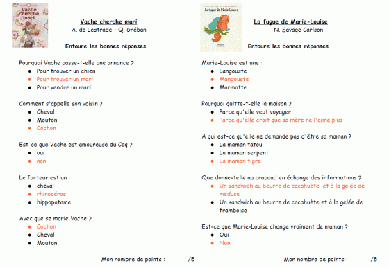 Voici un rallye lecture pour des cp lecteurs ou en cours. Le but : donner envie de lire aux enfants. Je mets à leur disposition au fond de la classe, une série de livres choisis au hasard ou selon un thème. Ils choisissent un livre, le gardent une semaine maxi, puis répondent à des questions (méga simples) de compréhension. Ils peuvent emmener le livre à la maison, l’écouter lire par un adulte, le lire seul… mais la fiche est faite en classe, seul. J’aide si la question n’est pas comprise. Les enfants sont autonomes et remplissent une grille de pointage pour signaler le livre emprunté. A chaque fiche, ils récupèrent un nombre de points. En fin de rallye, je totalise les points et je leur remet un diplôme de lecteur. Tous les enfants en ont un, même s’ils ont très peu de points. Ils ont juste un niveau de réussite différent. Ce rallye n’est pas extraordinaire, il propose des qcm afin de faciliter la lecture et l’aspect répétitif des questions permet de ne pas avoir de problèmes de compréhension de consigne.