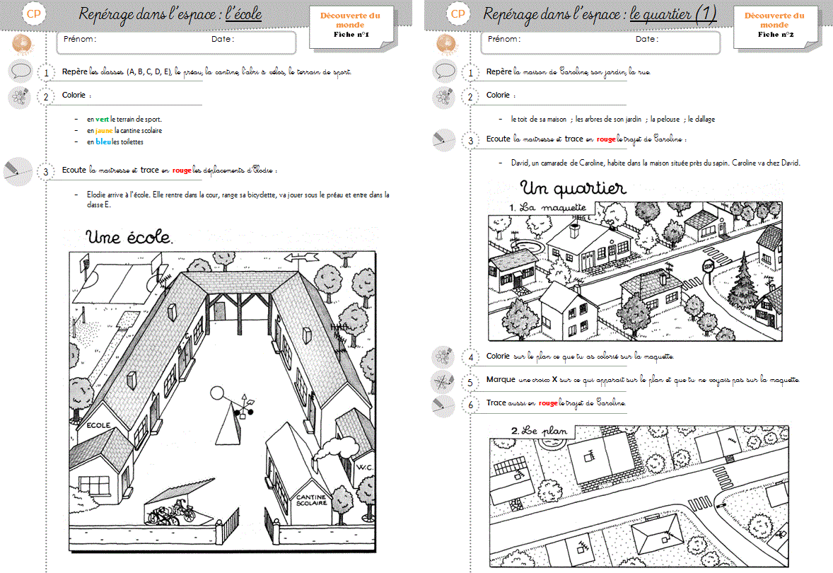 Repérage sur le plan de la classe, de l’école, du quartier