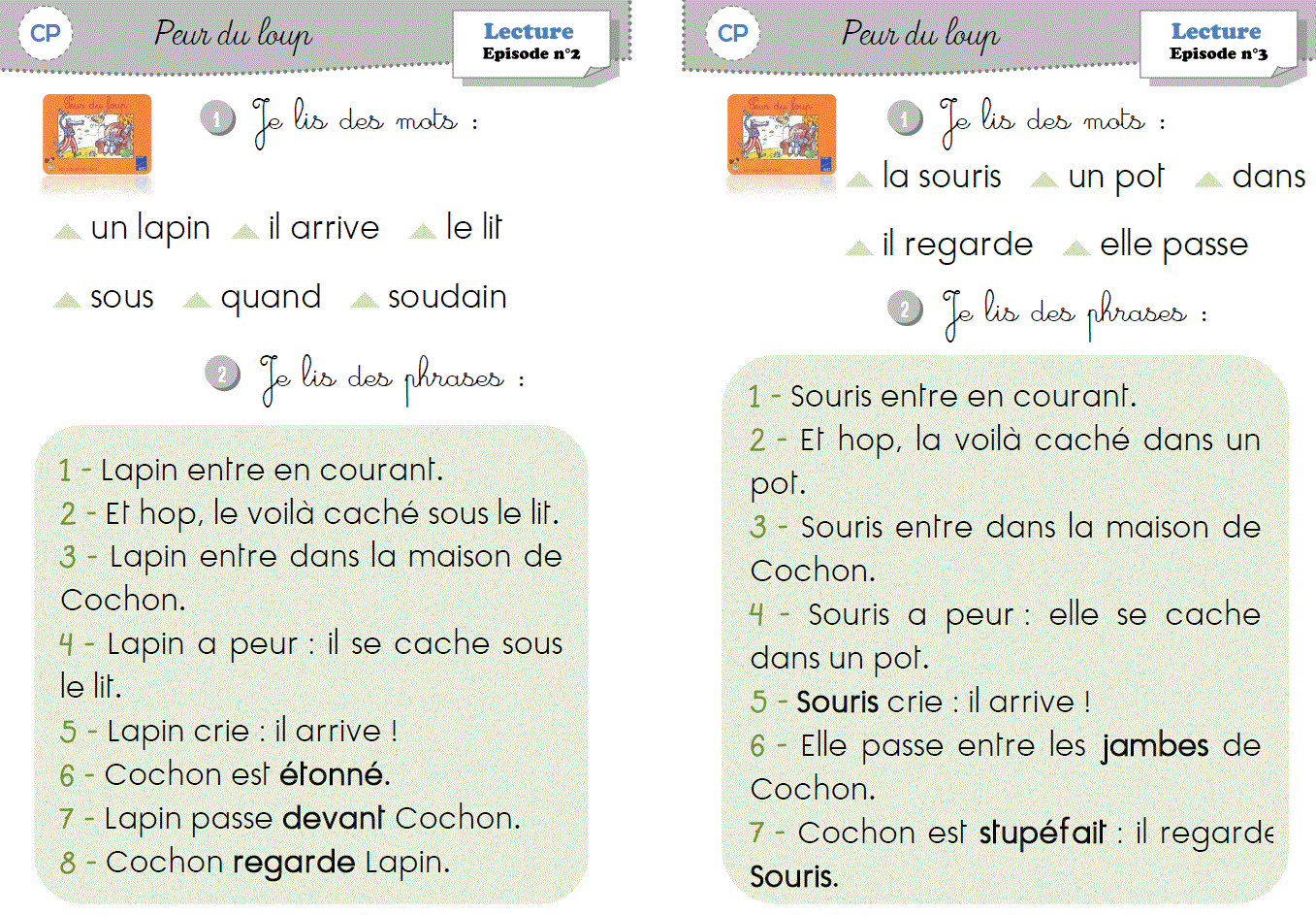 Bonjour bonjour ! J’espère que votre reprise s’est bien passée et que vous arrivez à émerger en ce samedi matin 😕 Pour commencer la journée, voici une jolie contribution de Marie L.  qui travaille avec la méthode Mika, et plus particulièrement sur l’histoire ‘Peur du loup‘. Elle m’a envoyé son super travail que j’ai remis en forme pour les besoins du blog ; vous pourrez donc télécharger le texte illustré, le cahier de lecture et pas moins de 10 fiches d’exercices ! Merci pour ce partage  🙂