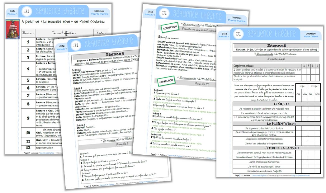 theatreLe dossier, concocté par Yanstit , et remodelé par mes soins se compose donc d’un plan de séquence, de l’intégralité des scènes, des questionnaires, de la grille de correction de production d’écrit. Tout pour mener à bien ce travail ! Et en ce qui concerne les répétitions orales, je compte me servir des APC au niveau du créneau horaire, ainsi que des situations d’Orphys pour travailler l’expression corporelle et la mise en voix.