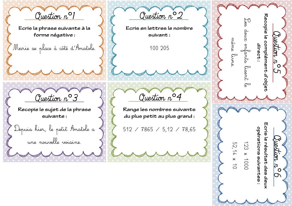 Marie-Laure(merci à elle !) nous envoie 7 cartes supplémentaires, s’ajoutant à celles de départ : toujours en français et mathématiques, pour des CM2