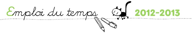 Edit du 27/27/12 : J’ai refait mon emploi du temps pour qu’il colle enfin aux horaires officiels et j’ai enlevé le créneau informatique puisque vous m’avez signalé qu’il ne devait pas apparaitre comme une matière en tant que telle. Merci pour vos remarques qui m’ont aidée à le modifier ! (Mais maintenant c’est fini, j’y touche plus ! :p)