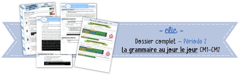 Et voici le dossier complet de la période 3 ! Comme pour les deux périodes précédentes, il contient le déroulé sommaire des séquences (n’oubliez pas, il vous faut le livre de la méthode pour utiliser comme il le faut ces documents ^^), les textes, les exercices (vocabulaire inclus), les leçons, textes transposés, collectes, devoirs et les diaporamas pour les activités collectives. Figurent également dans le dossier les thèmes et la piste de progression pour notre jogging d’écriture quotidien.