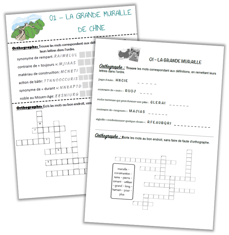 Pour l’exercice 2, c’est une grille de mots casés : ils doivent placer les mots en s’aidant du nombre de lettres et de l’emplacement des lettres déjà écrites dans les cases.