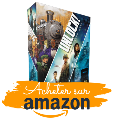 Je vous ai mis en lien le Unlock Games dont l’univers est celui des jeux de société des Aventuriers du rail, de Mysterium et de Pandemic. Il existe aussi deux Unlock kids qui peuvent être joués avec des enfants à partir de 6 ans, et ça c’est méga chouette !!