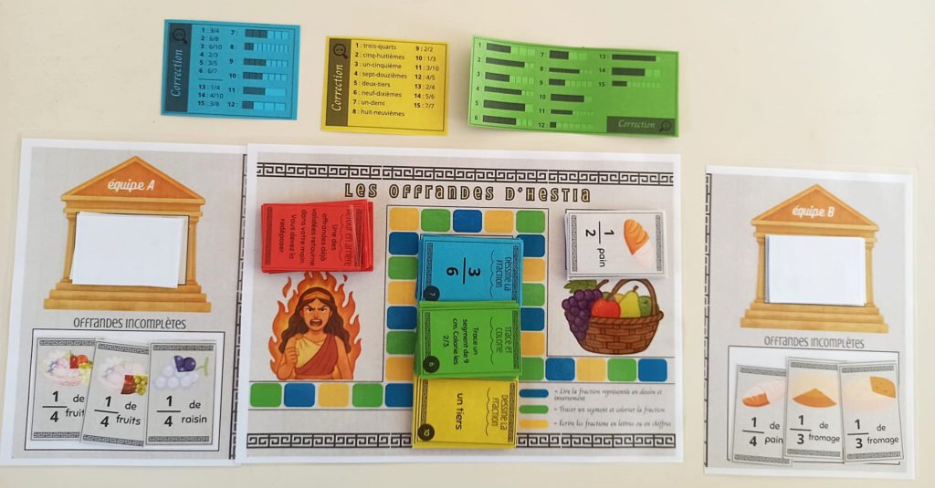 Note : Chaque jeu vient avec ses fiches auto-correctives. En effet, la première séance du jeu sera faite en atelier dirigé pour que je puisse leur expliquer les règles et vérifier qu’ils jouent correctement, mais la deuxième séance sera faite en autonomie, ils doivent donc pouvoir s’auto-gérer.