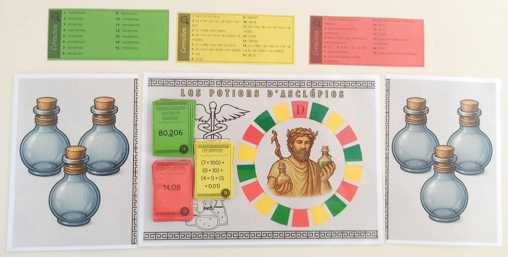 Asclépios, dieu de la médecine, prépare un remède sacré capable de guérir une mystérieuse maladie frappant les héros grecs. Pour l’aider à trouver la bonne formule, les joueurs doivent collecter les bonnes doses d’ingrédients… exprimées en nombres décimaux !