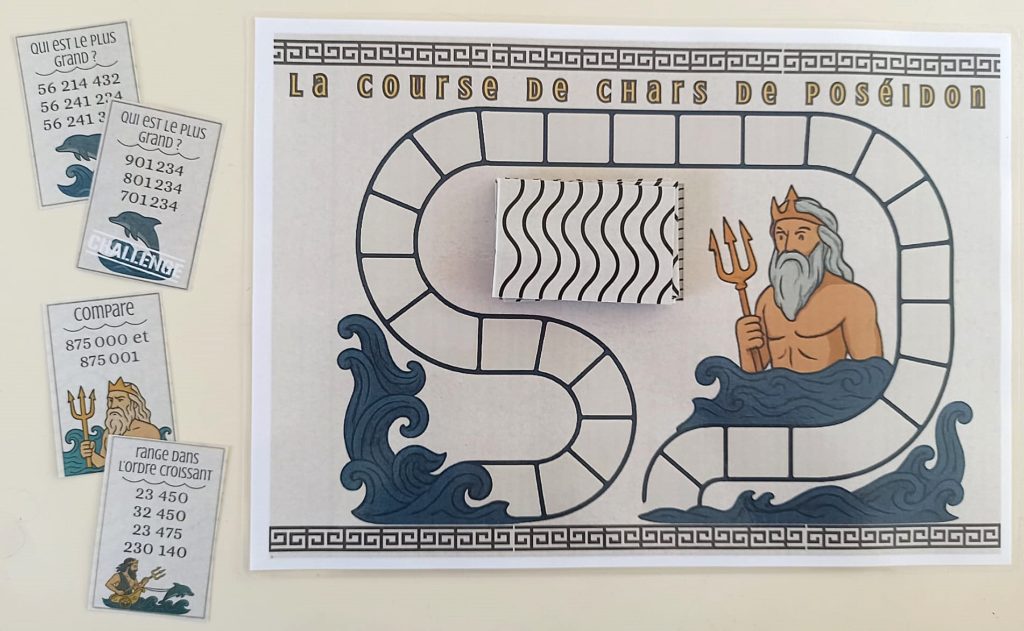 Aidez Poséidon à élire le meilleur conducteur de char en remportant la course mythologique ! Pour avancer, chaque équipe doit réussir des défis de comparaison ou de rangement de nombres entiers.
